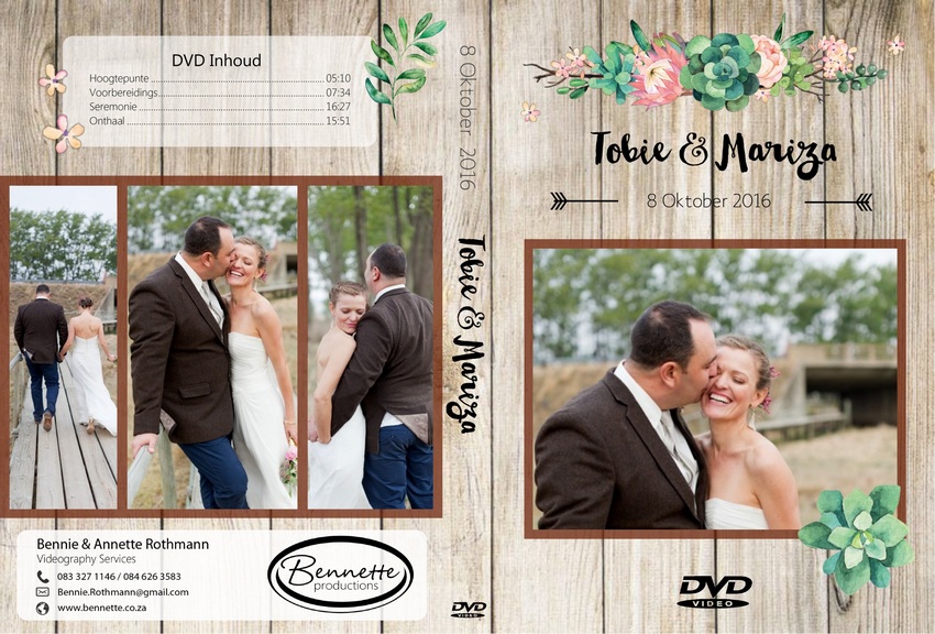Tobie en Mariza is getroud op 8 Oktober 2016. Die seremonie was gehou by die NG Kerk Wakkerstroom en die onthaal by Bezalel Venue, Wakkerstroom.